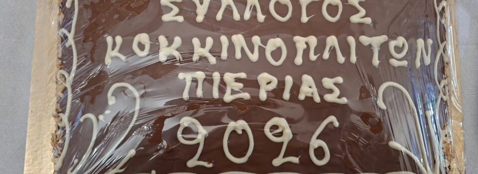 Ο Σύλλογος Κοκκινοπλιτών Ν.Πιερίας πραγματοποίησε την κοπή της πρωτοχρονιάτικης πίτας του χορευτικού τμήματος ενηλίκων, σε μια όμορφη και ζεστή συνάντηση. Ευχόμαστε σε όλους καλή χρονιά, με υγεία, χαρά και πολλές δημιουργικές στιγμές γεμάτες χορό!