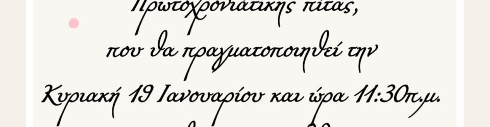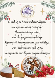 Κοπή Πρωτοχρονιάτικης Πίτας Συλλόγου Κοκκινοπλιτών Πιερίας
