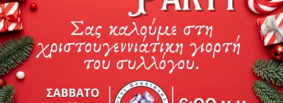 Σας καλούμε στην Χριστουγεννιάτικη Γιορτή του Συλλόγου Κοκκινοπλιτών Πιερίας, το Σάββατο 14 Δεκεμβρίου 2024 στις 6 το απόγευμα!