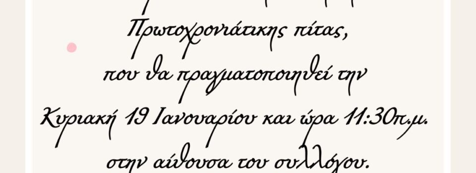 Κοπή Πρωτοχρονιάτικης πίτας στην αίθουσα του Συλλόγου Κοκκινοπλιτών Πιερίας