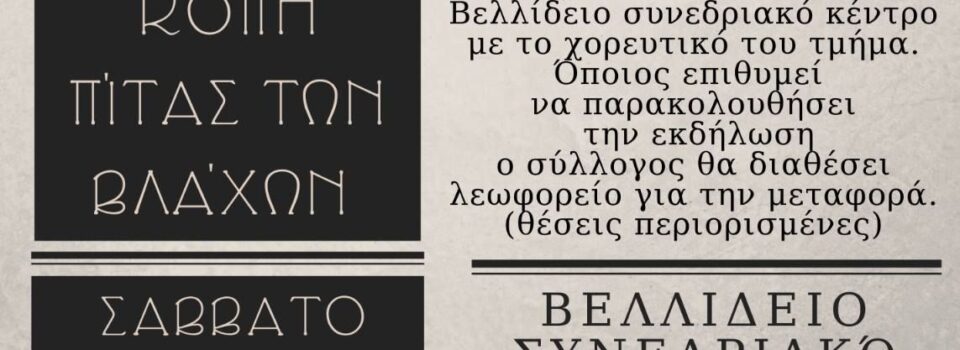 Κοπή πίτας Πανελλήνιας Ομοσπονδίας Πολιτιστικών Συλλόγων Βλάχων