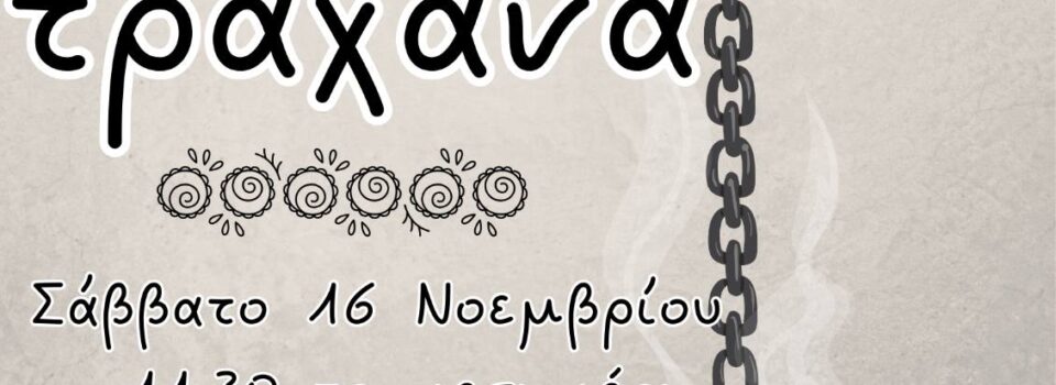 Ο Σύλλογος Κοκκινοπλιτών Πιερίας σας προσκαλεί στην γιορτή τραχανά το Σάββατο 16 Νοεμβρίου στις 11:30πμ στην αίθουσα του συλλόγου με ζωντανή μουσική και πολύ κέφι για τον ερχομό του Χειμώνα